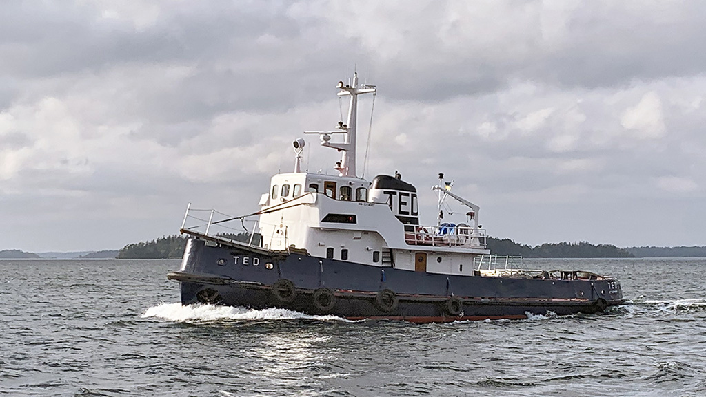 Tugboat with pusher arrangement. Very good icebreaker with strong hull for its size. 26.76 m x 8.03 m.