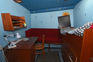 På huvuddäck finns mäss, byssa och toalett/dusch. Under däck finns fyra hytter, varav två med våningssängar.