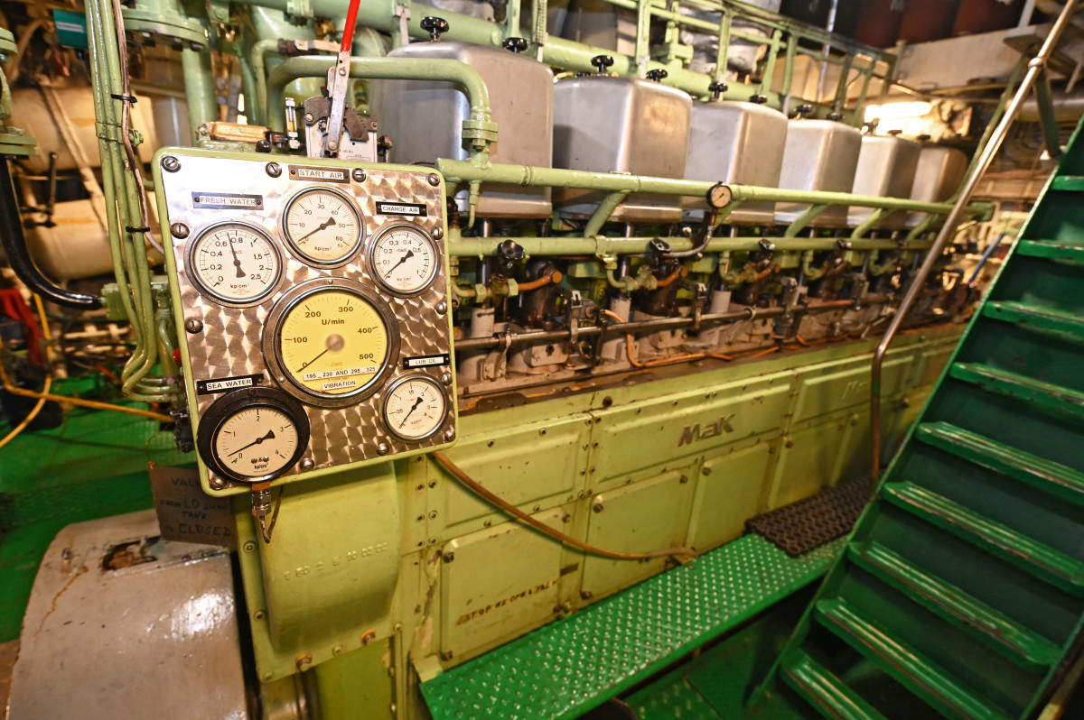 - (MainEngines)Huvudmotor: MaK 6Z4451Ak, 750kW, installerad 1964, Maskinen ställdes ned från 1500hp till 750kW i Sverige på 1970-talet.
