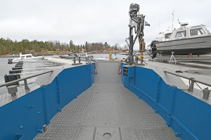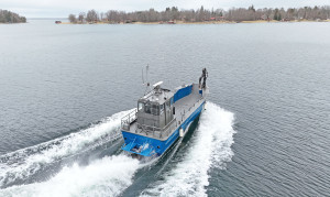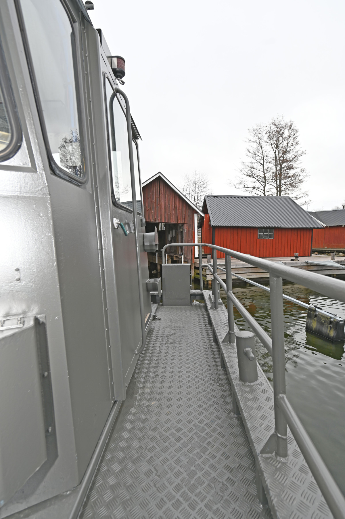 Fast workboat in good condition, built in 1991 for the Finnish Navy. Uisko class, well regarded for its maneuverability, shallow draft and speed. 12.00 m x 3.61 m. 0.6 m draft. Just over 30 knots top speed. About 3 mt cargo capacity. The wheelhouse can be tilted forward for improved access to the engines. Repainted during the winter of 2025/26.