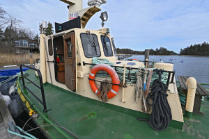 Kan med fördel köpas tillsammans med pråm (14X6m) som säljs av samma ägare, ett komplett ekipage för alla jobb i skärgården.