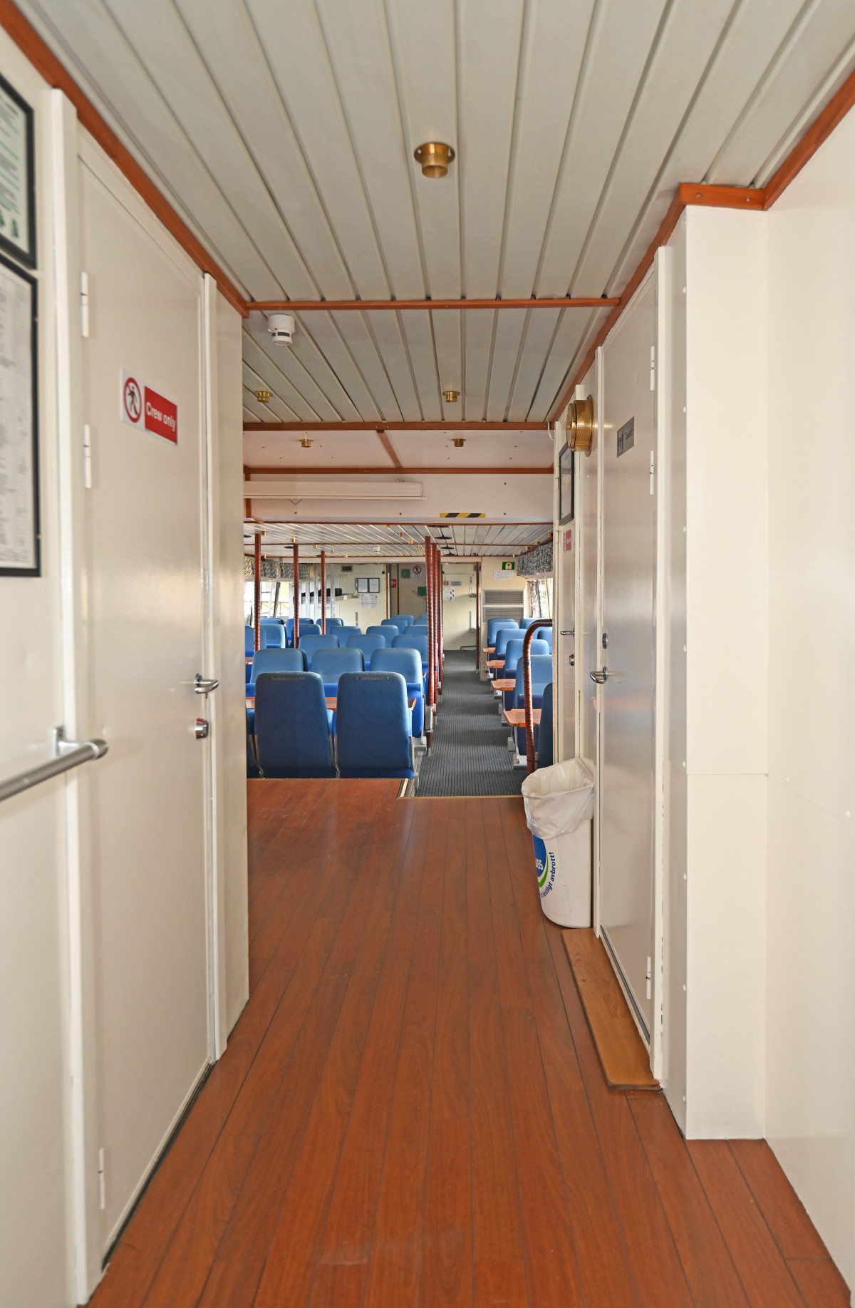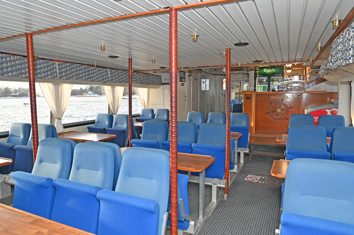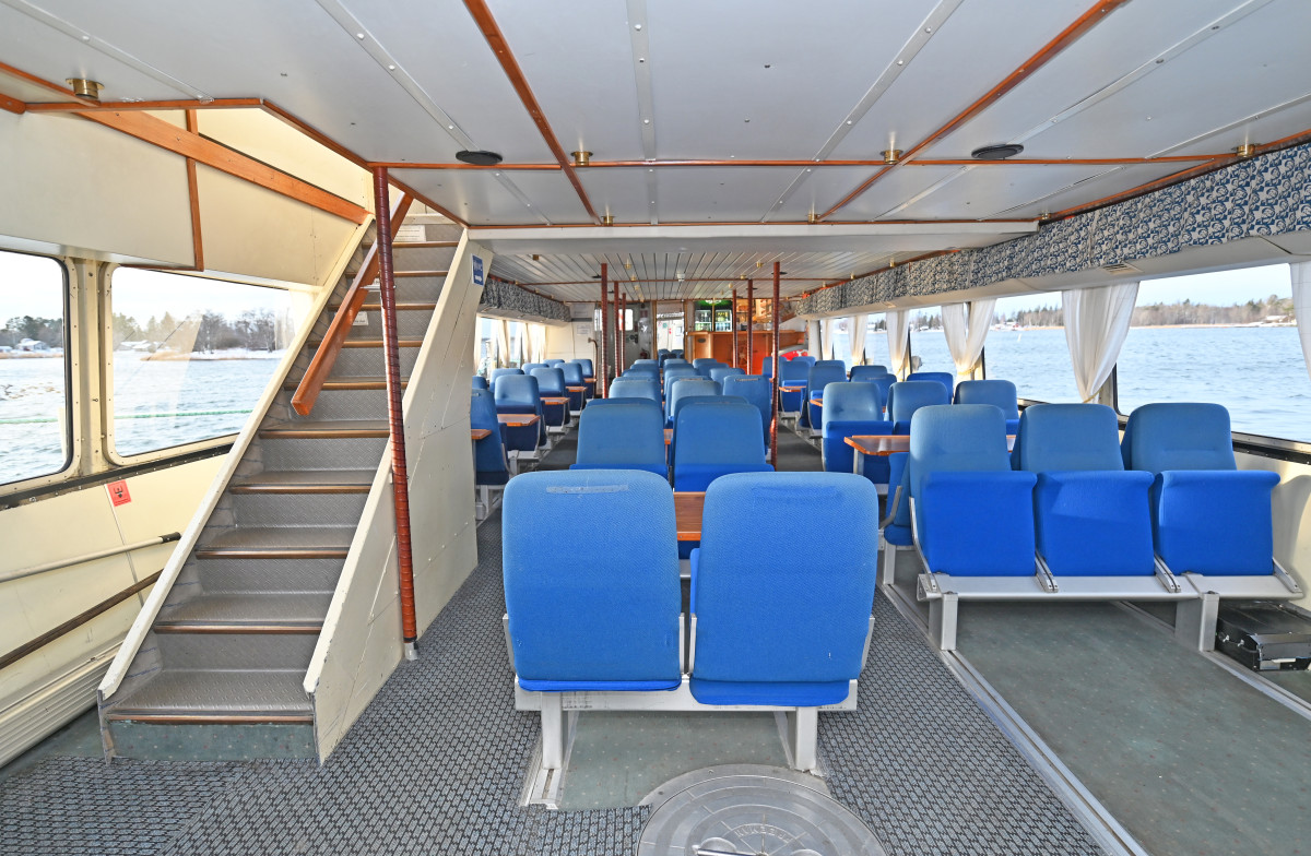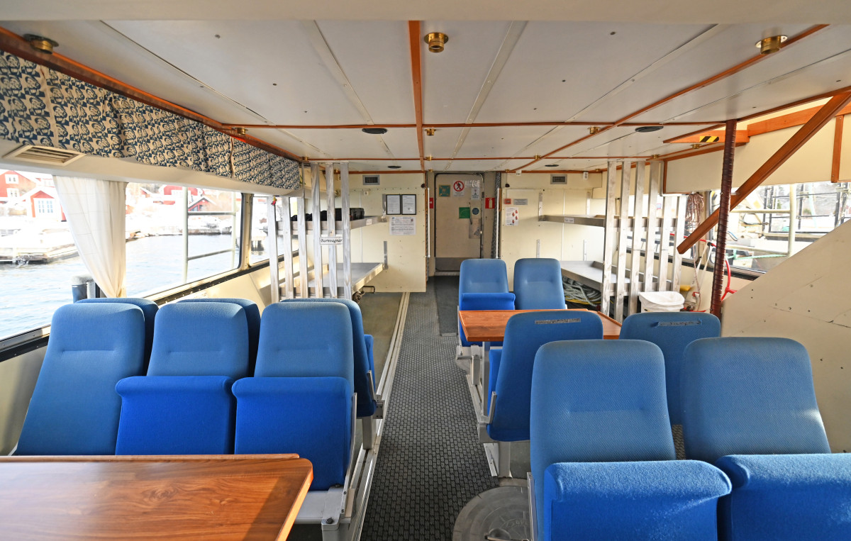 Salong huvuddäck. 67 stolar med tillhörande bord. Baggageförvaring i fören och bar/café, samt toaletter i aktern.