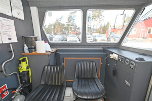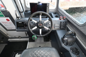 Wheel house and helm station with modern navigation equipment. Hydraulic gangway and door operation.