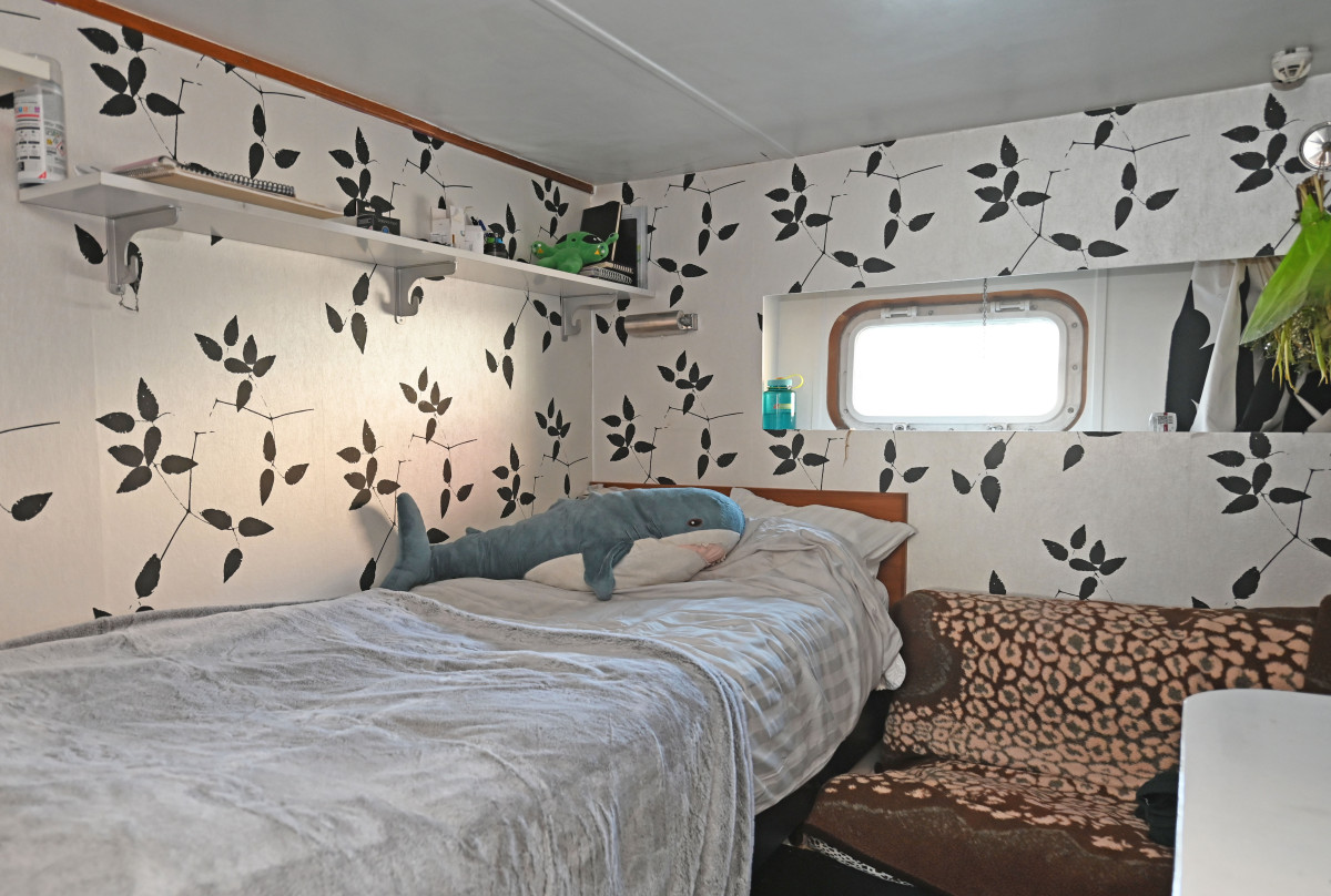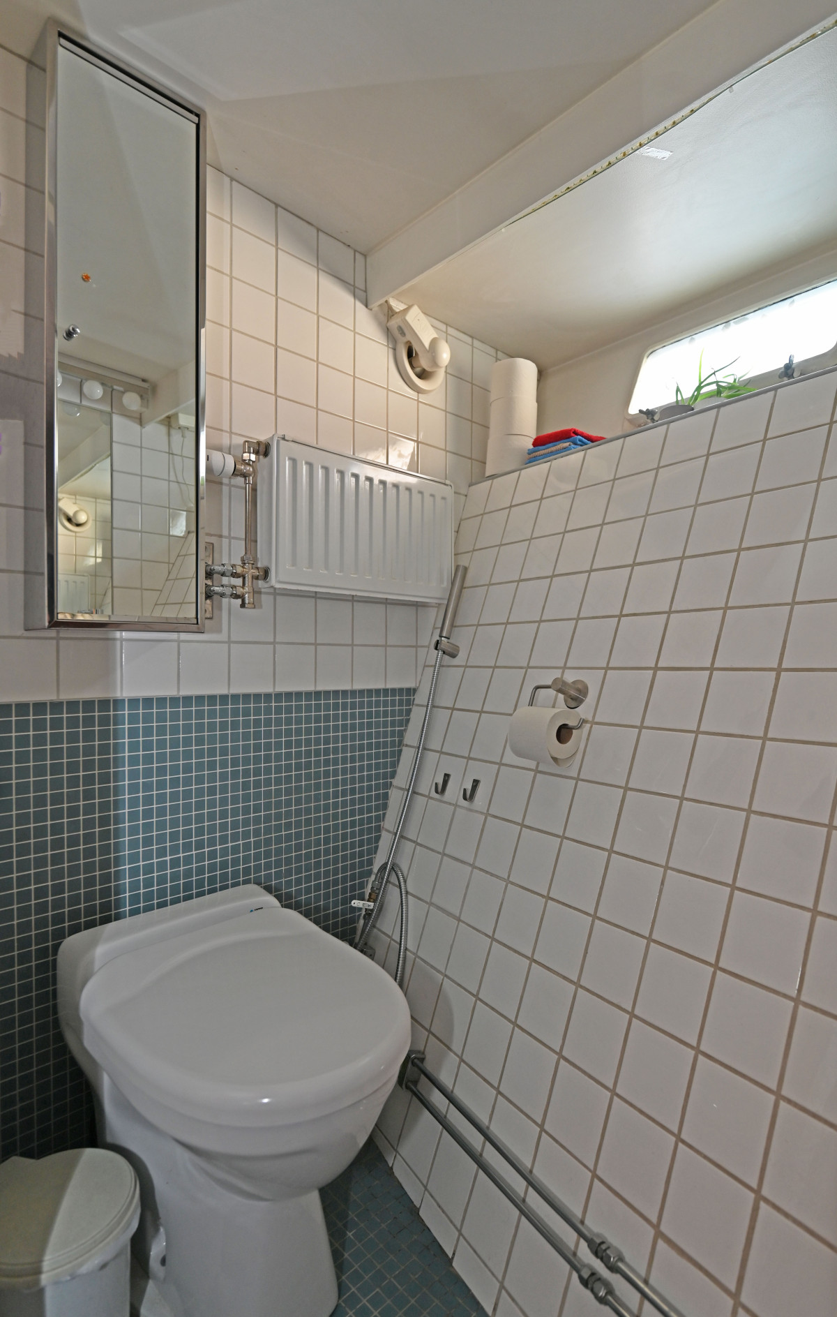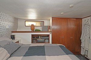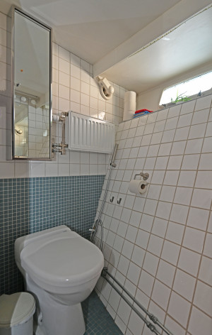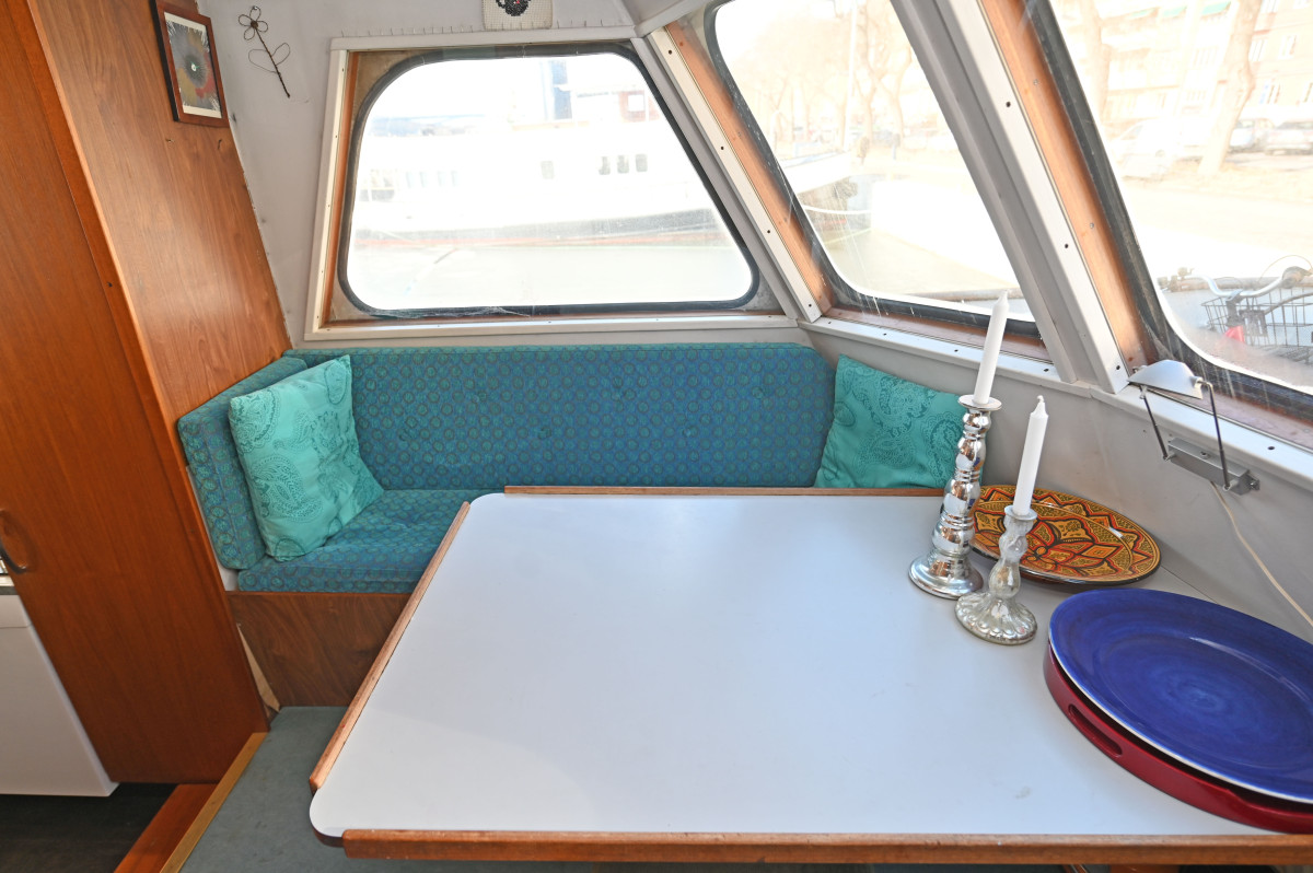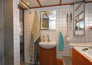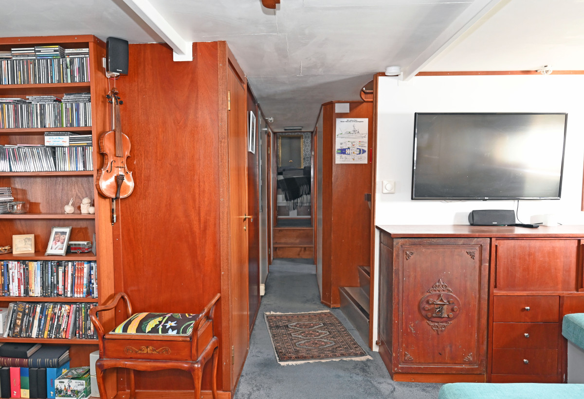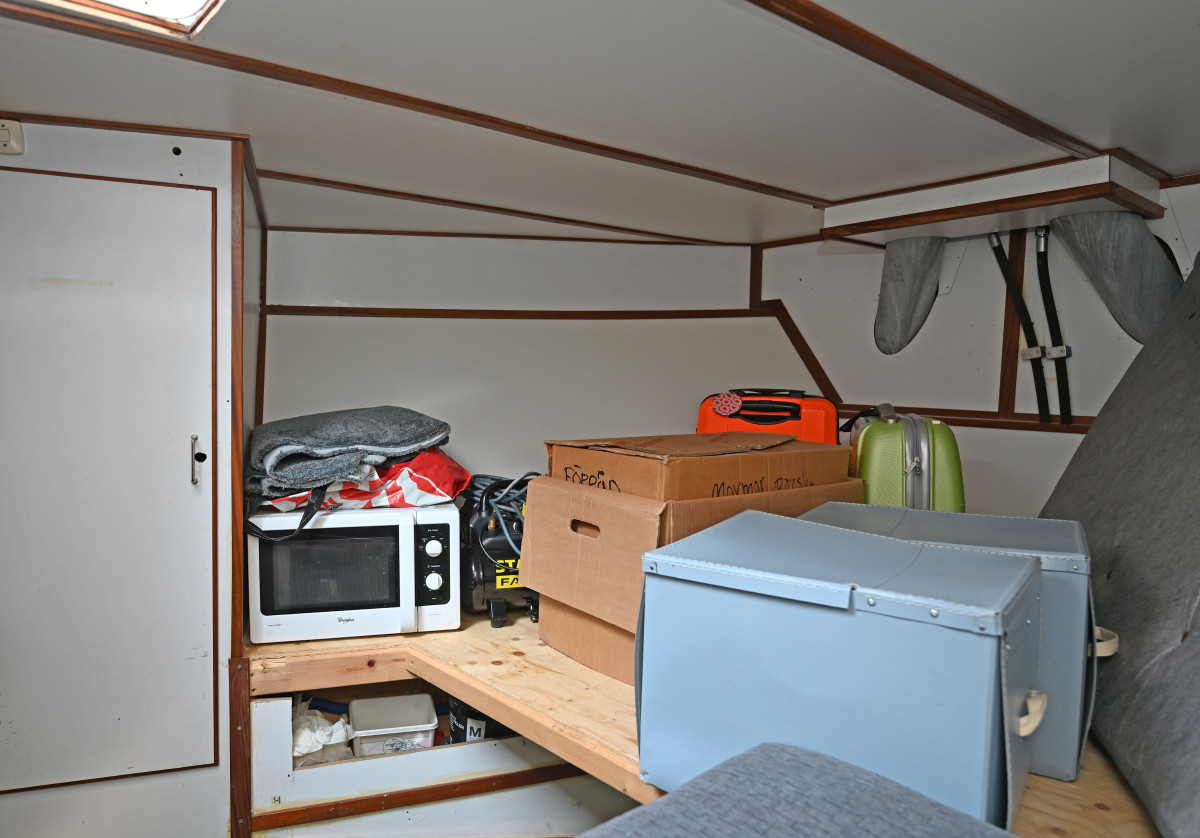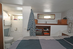 Salong under däck med toalett med dusch och bad samt 2 hytter i akterdelen. Ytterligare en hytt samt förråd i korridor samt en kaptenshytt med toalett i fören.