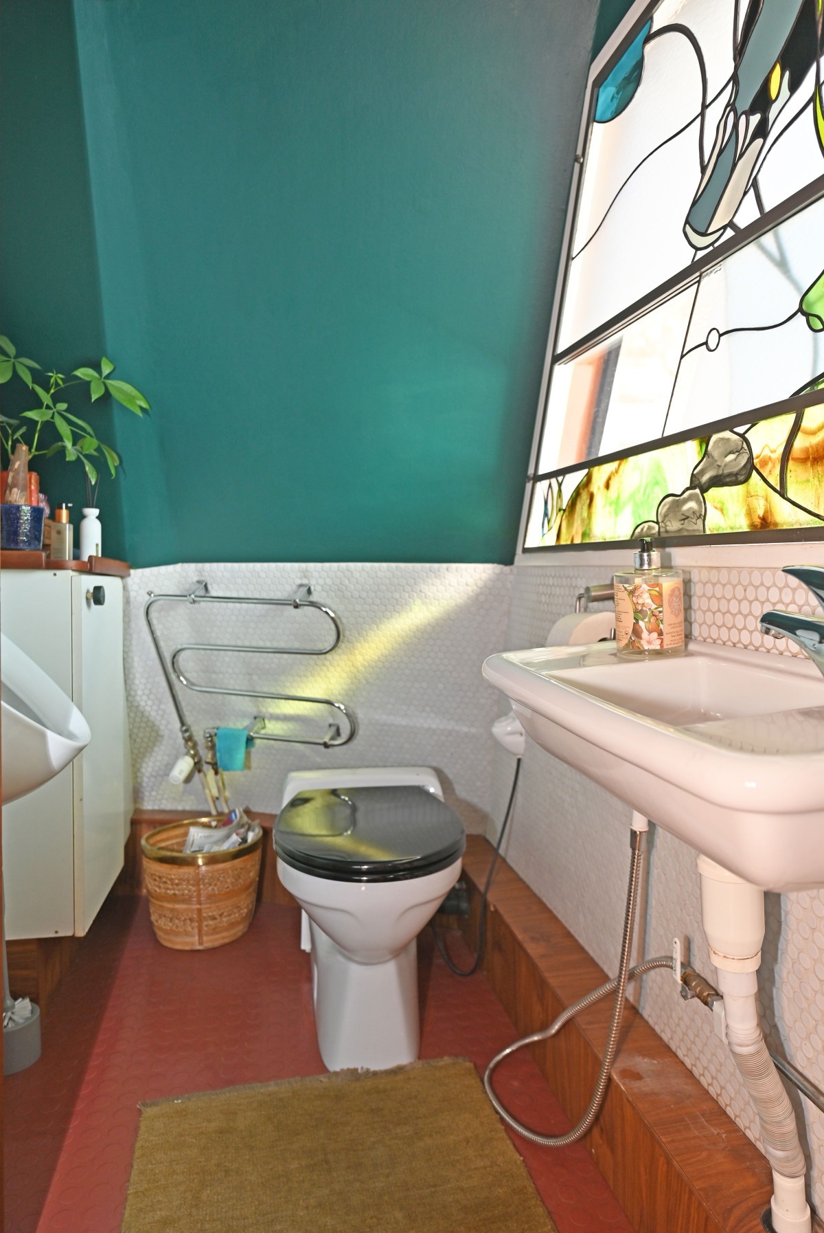 Heating, waterborne system, underfloor heating and radiators, domestic boiler with electric immersion heater and a wood burning stove in the saloon.