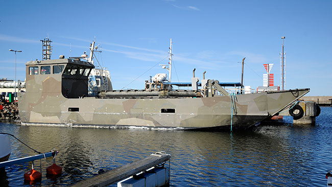 Naval landing craft that can carry extra fuel. A prototype vessel with very few working hours. Sold from Sweden to Åland.