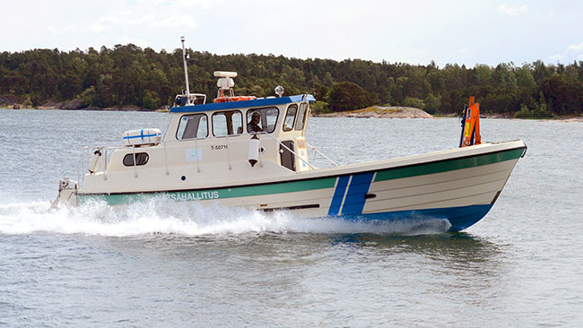 Finnish workboat 10.35 x 3.40 metres, GRP. Deck crane, 25 knots.