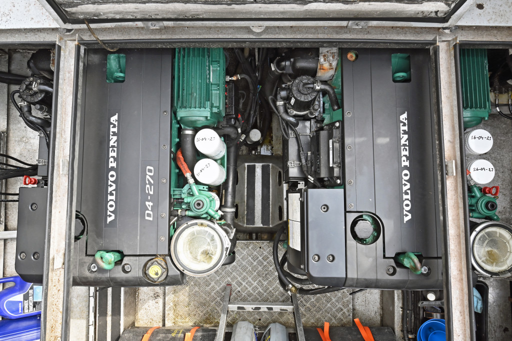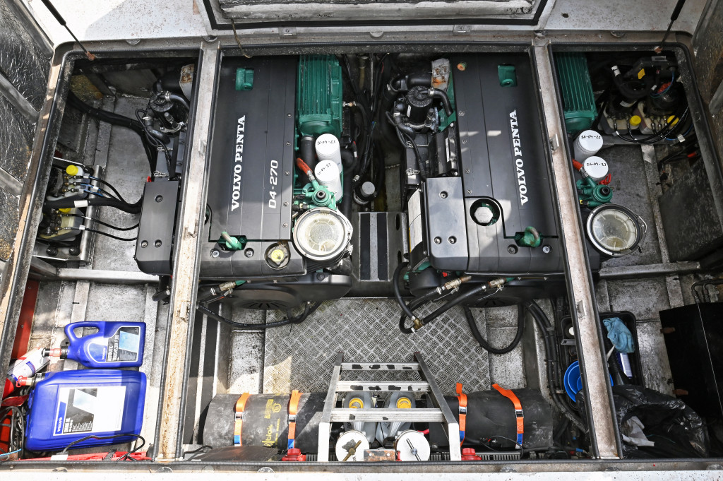 - (MainEngines)Huvudmotorer: 2 Volvo D4-270, 600 hkr, ≈6500 gångtimmar, installerad 2021